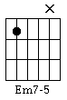 Ett Em7 är nog det lättaste ackordet som finns. Alla strängar klingar löst, utom A-strängen. Notera att det är samma ackord som E7 fast med sänkt ters.