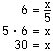 Så går det till med teckenomvandling. Nu provar vi med det lite långsammare sättet. För att få bort femman från högerledet multiplicerar vi bägge leden med fem: