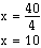 Här flyttade vi talet 3,5 från vänsterledet till högerledet och ändrade gånger till delat. Sedan multiplicerade vi täljaren 14 och nämnaren 3,5 med 10 för att få bort decimalkommat.